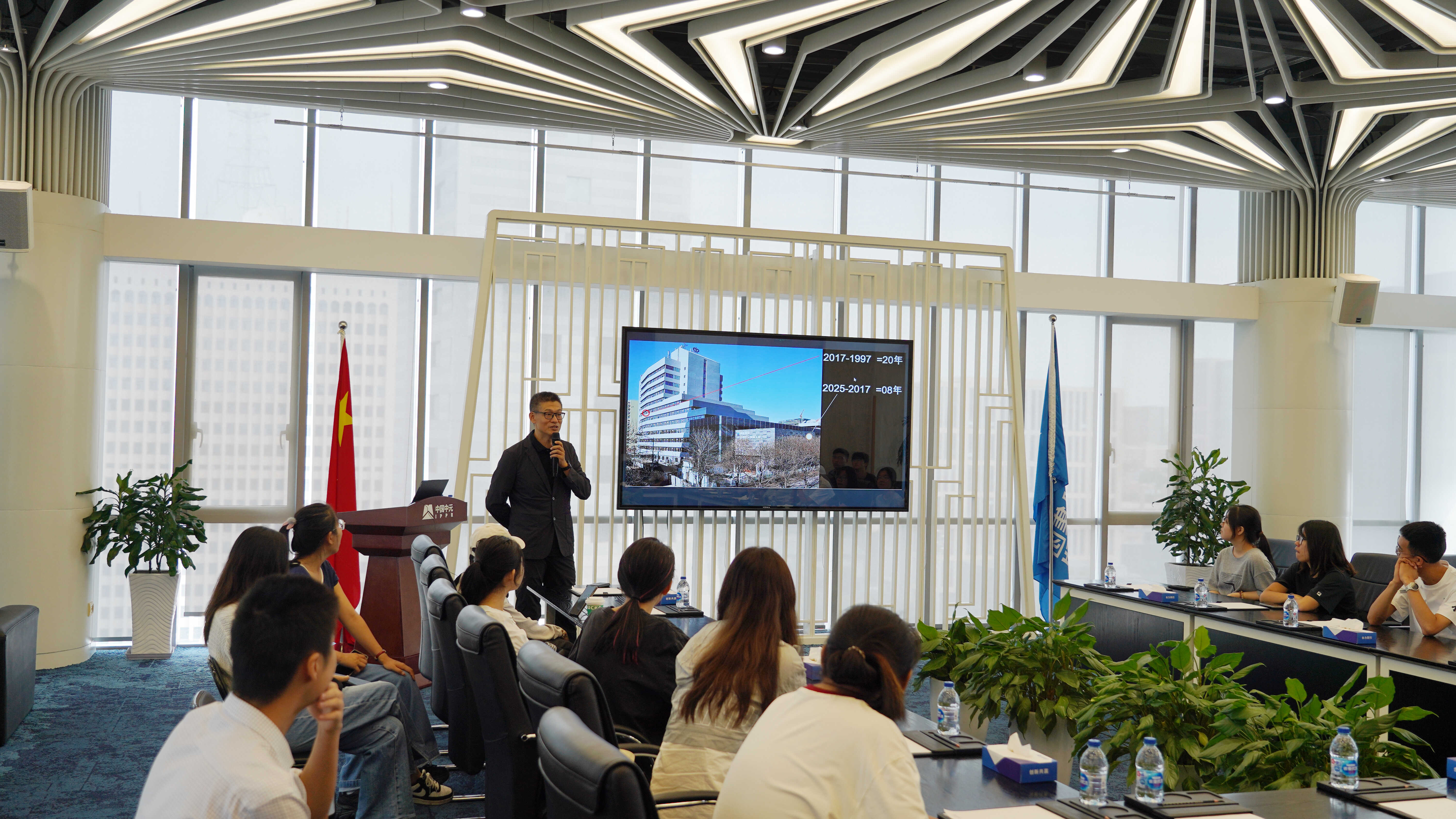 公司執行總建筑師陳自明帶領來訪師生參觀了院史展廳,從歷史發展、業務領域、 重點項目、企業文化、人才培養等方面對中國中元進行了總體介紹,并與來訪師生就設計師的成長進行專題研討。