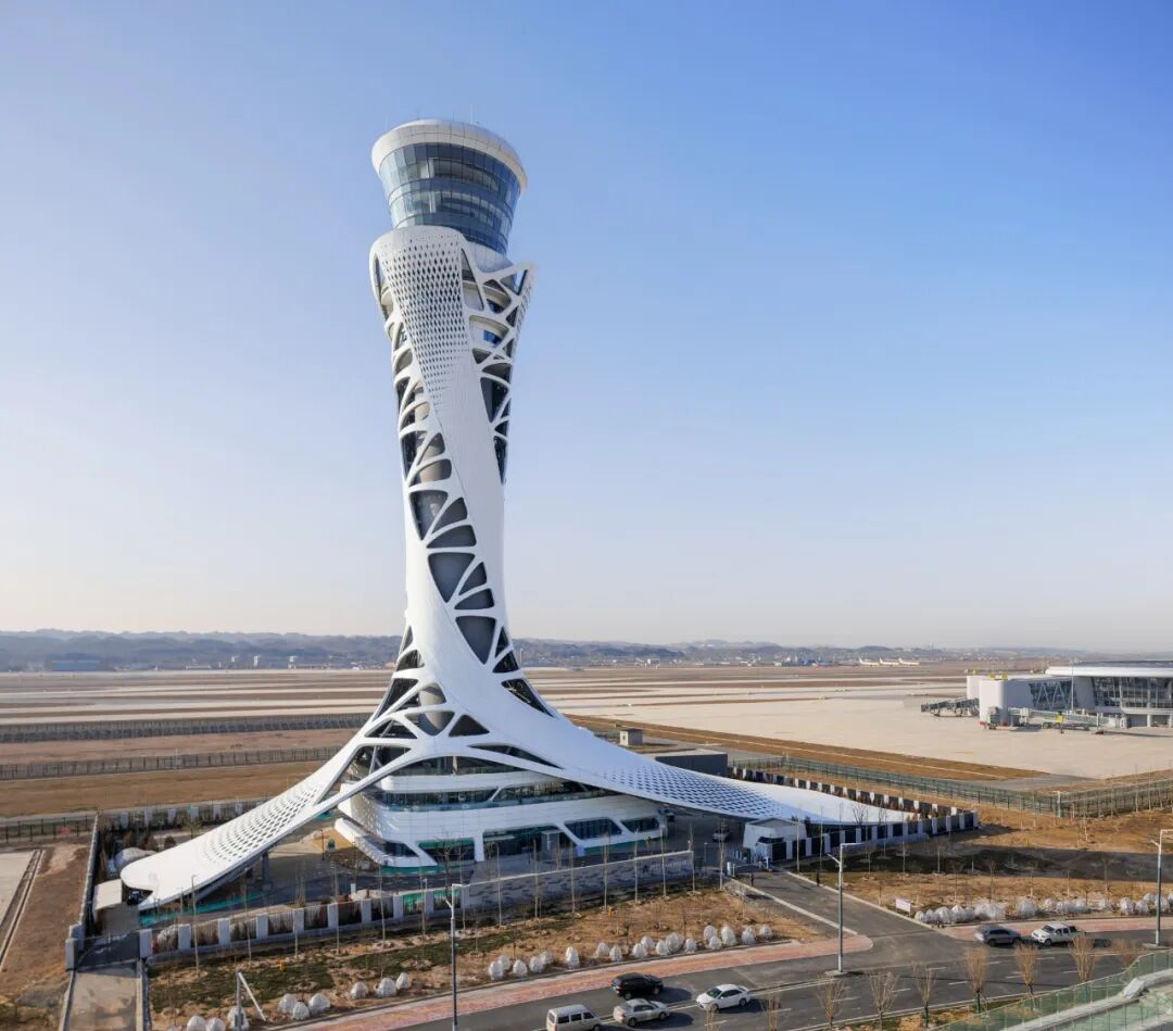 項目以“絲綢之路”與“敦煌飛天”為設計靈感,靈動飄逸的建筑形體使塔臺與空管遙相呼應,相得益彰,展現蘭州獨特的地域文化特點。項目巧妙利用“拓撲”技術,解決造型以及結構難題,實現塔臺整體功能的“一體化”設計以及頂部“三明室”的創新布局,并成功論證通過了塔臺消防難題。項目同時融合AIOT(人工智能物聯網)、大數據與數字孿生技術,實現運行場景的數字化模擬以及智能調控、安防信息、機電設備等數字化管理。